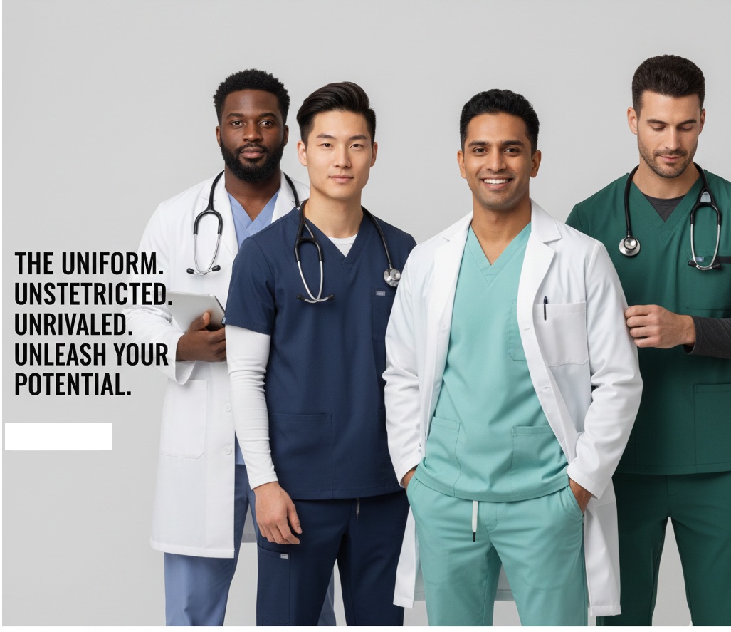 Modern, professional silhouette designed for men. Looks sharp and moves freely—no more baggy scrubs.
