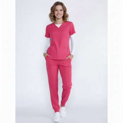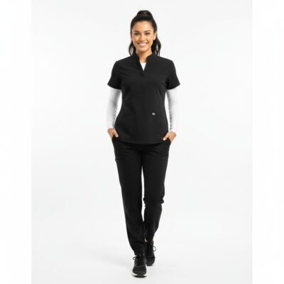 Amazing stretch! I can move freely all day without any pulling. The fabric is breathable and holds its shape perfectly, even through long shifts. My favorite set yet